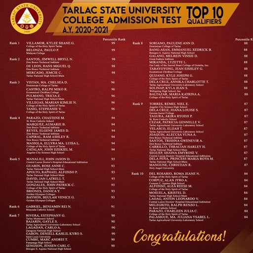 TSU CAT A.Y. 2020-2021 Top 10 Qualifiers