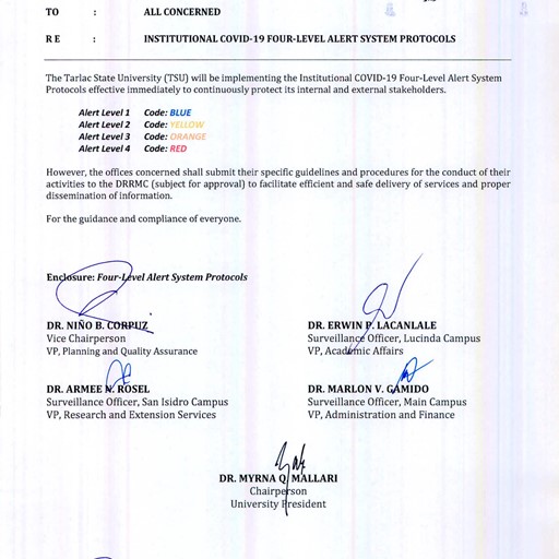 However, the offices concerned shall submit their specific guidelines and procedures for the conduct of their activities to the DRRMC (subject for approval) to facilitate efficient and safe delivery of services and proper dissemination of information.