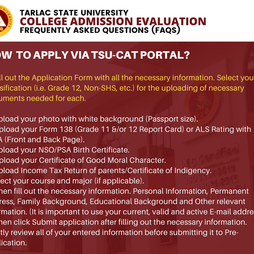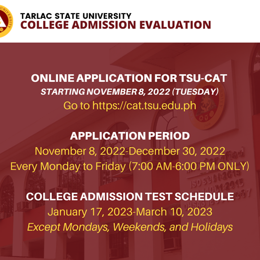To all aspiring TSU first-year applicants, the online application for the TSU College Admission Evaluation for Academic Year 2023-2024 starts today, November 8, 2022.