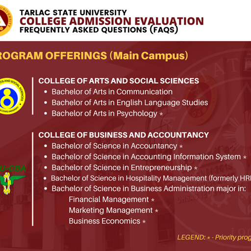 To learn more about the program you wish to apply to, you may also check out this link (https://www.tsu.edu.ph/academics/colleges/)