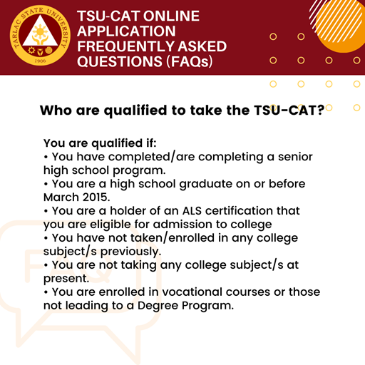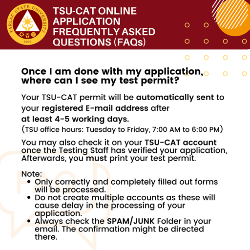 How to use the TSU CAT online application? See Advisory No. 1 (https://www.facebook.com/opaitsu/posts/299720265524140).