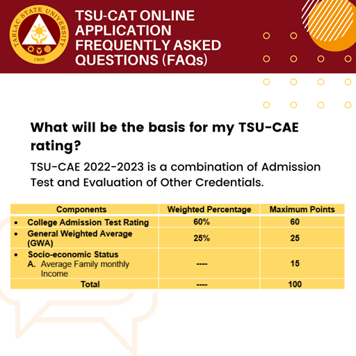 Online application for the TSU College Admission Evaluation for Academic Year 2022-2023 (TSU CAE) will start on January 25, 2022 until February 28, 2022.