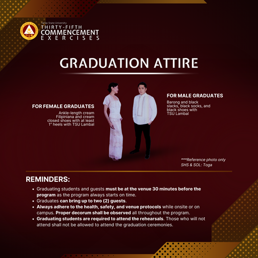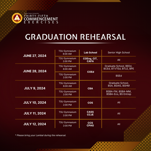 To all candidates for graduation, here are the graduation activities for the 35th Commencement Exercises that will be held this July 2024.