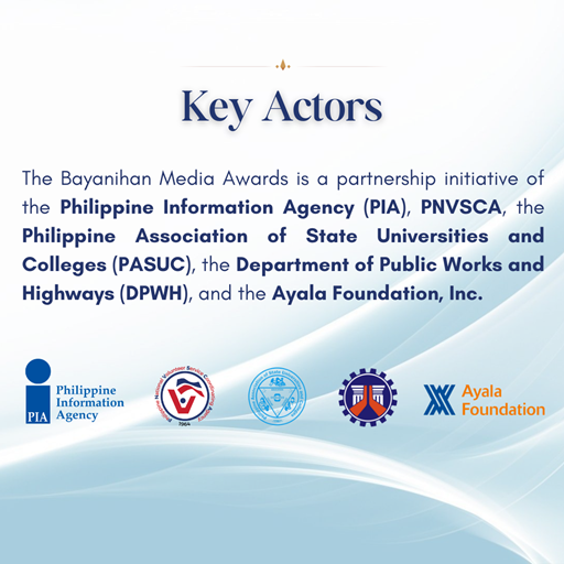 This award is a collaborative effort between the Philippine National Volunteer Service Coordinating Agency (PNVSCA), Philippine Information Agency (PIA), Philippine Association of State Universities and Colleges (PASUC), Department of Public Works and Highways (DPWH), and the Ayala Foundation Inc. (AFI), celebrating outstanding media practitioners and organizations that champion responsible and ethical media practices.