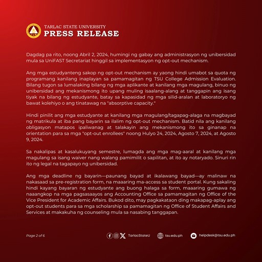 Moreover, on April 2, 2024, the university administration sought the advice of the UniFAST Secretariat regarding the implementation of the opt-out mechanism.
