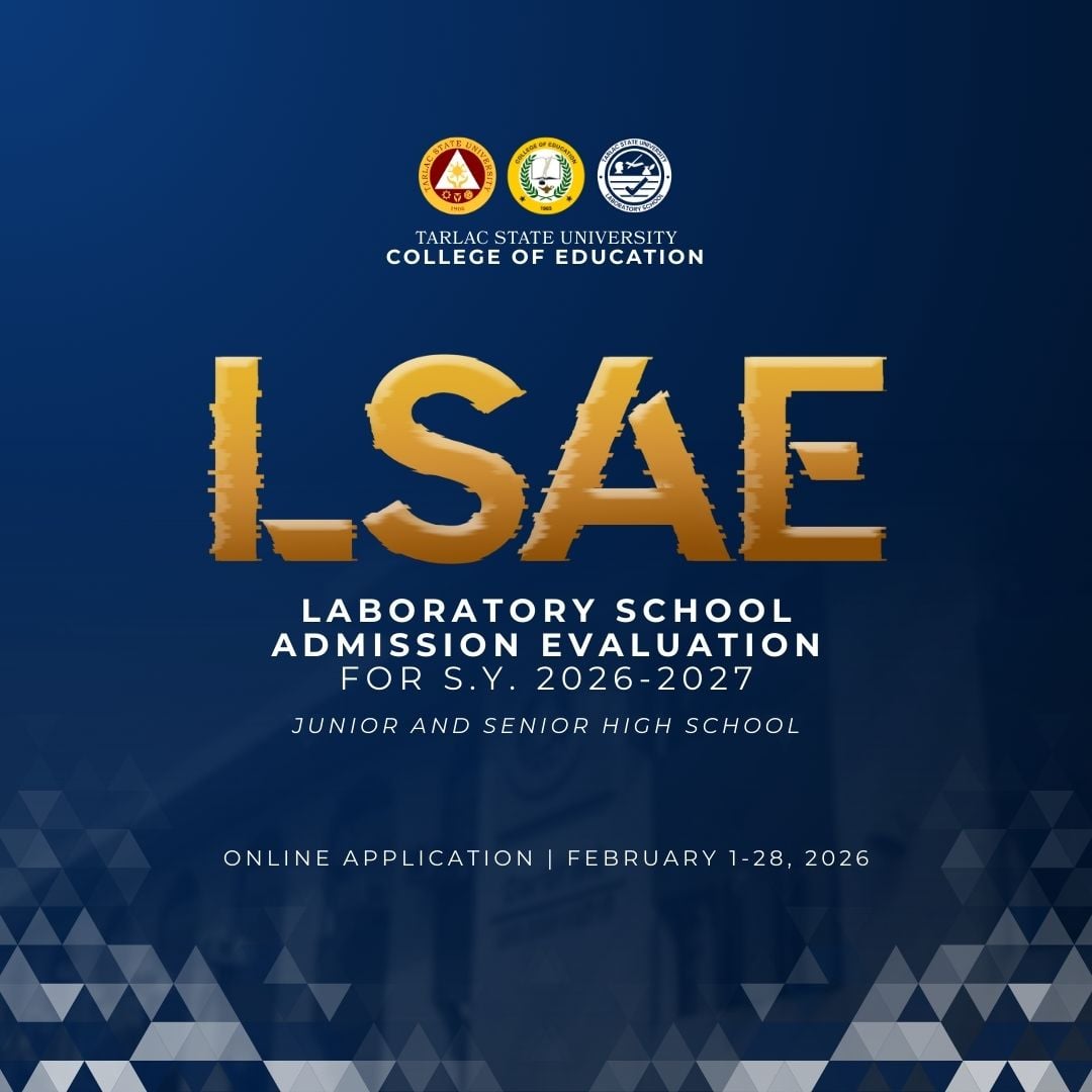 The online application for the Tarlac State University-Laboratory School Admission Evaluation (TSU-LSAE) will be open beginning February 1, 2026 (Sunday) until February 28, 2026 (Saturday).