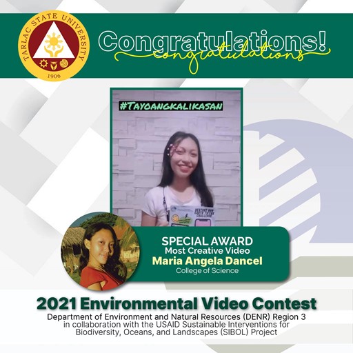 Meanwhile, Ms. Dancel won the "Most Creative" special award for her video entry. She has also previously placed first in the photo contest of the DENR-Community Environment and Natural Resources Office (CENRO) last March 31, 2021.