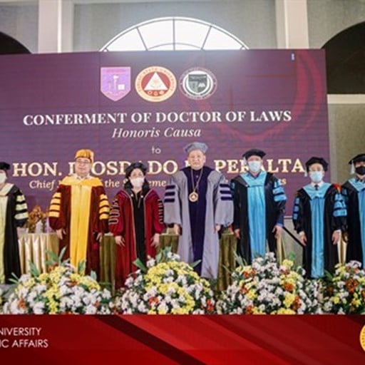 Hon. Peralta, the 26th Chief Justice, was conferred with this degree to honor his contributions to the justice system such as the declogging of court dockets, adoption of reforms that simplifies court procedures, and the promotion of a more disciplined and responsive judiciary. He is also noted for his speedy and scholarly disposition in criminal cases.