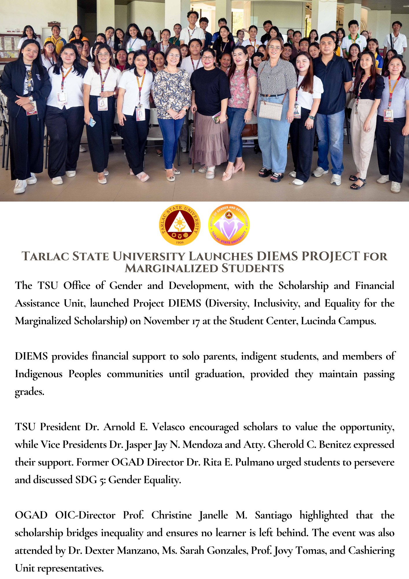 Tarlac State University Launches DIEMS Project for Marginalized Students