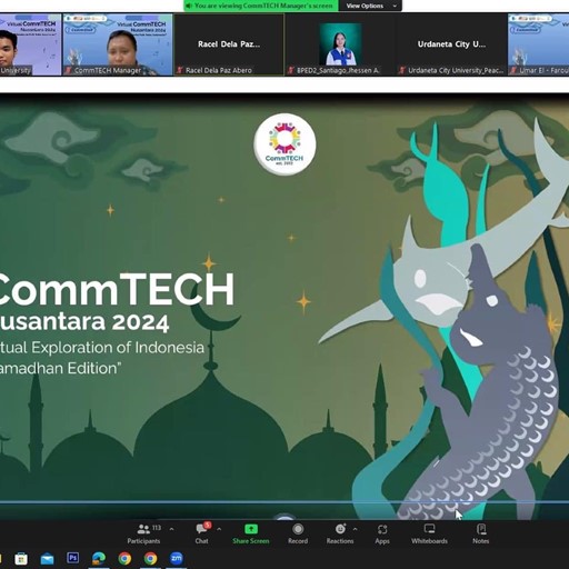 TSU delegates, Mr. Romer Madrid and Asst. Prof. Maria Fermina Joyce C. Nucum, a student and faculty member from the Department of Communication under the College of Arts and Social Sciences, participated in the recently concluded 34th edition of Virtual COMMTech Nusantara 2024: Wonderful Folk Tales Indonesia, held via Zoom from June 24 to July 5, 2024. The event highlighted their efforts to strengthen student-teacher academic mobility.
